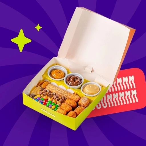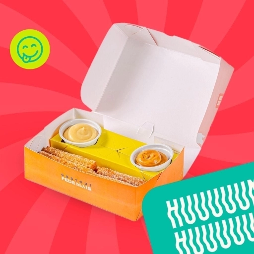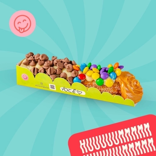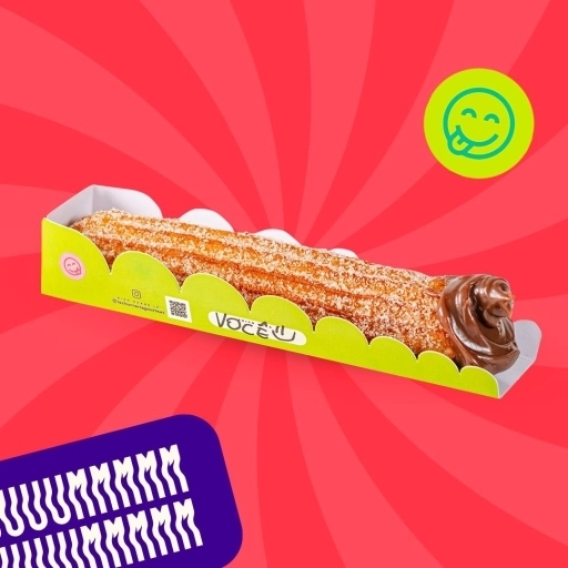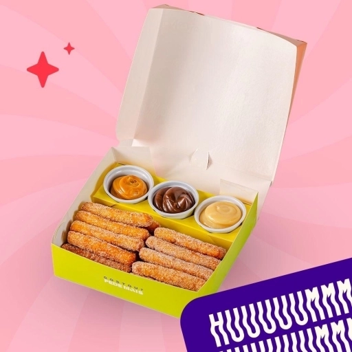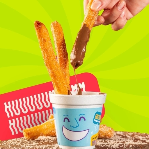15 quadradinhos de churros + 1 mini churros brasileiro + 2 mini churros gourmet + 3 recheios