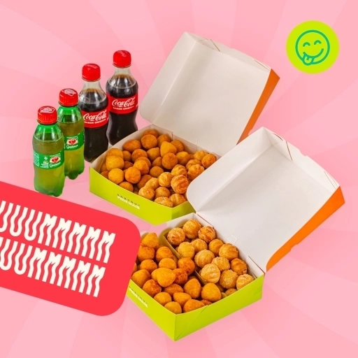 30 salgados + 20 bombinhas + 2 refrigerantes